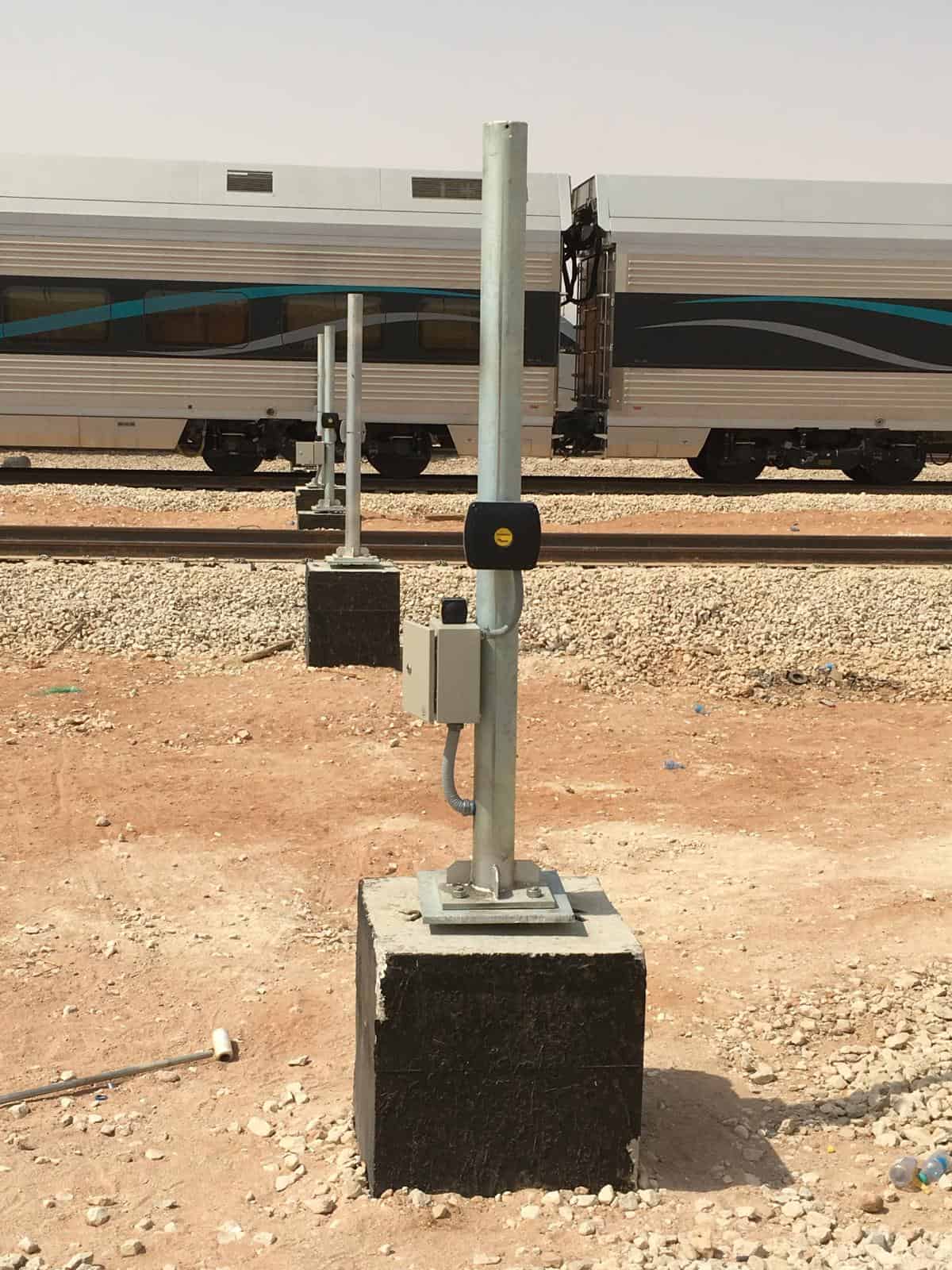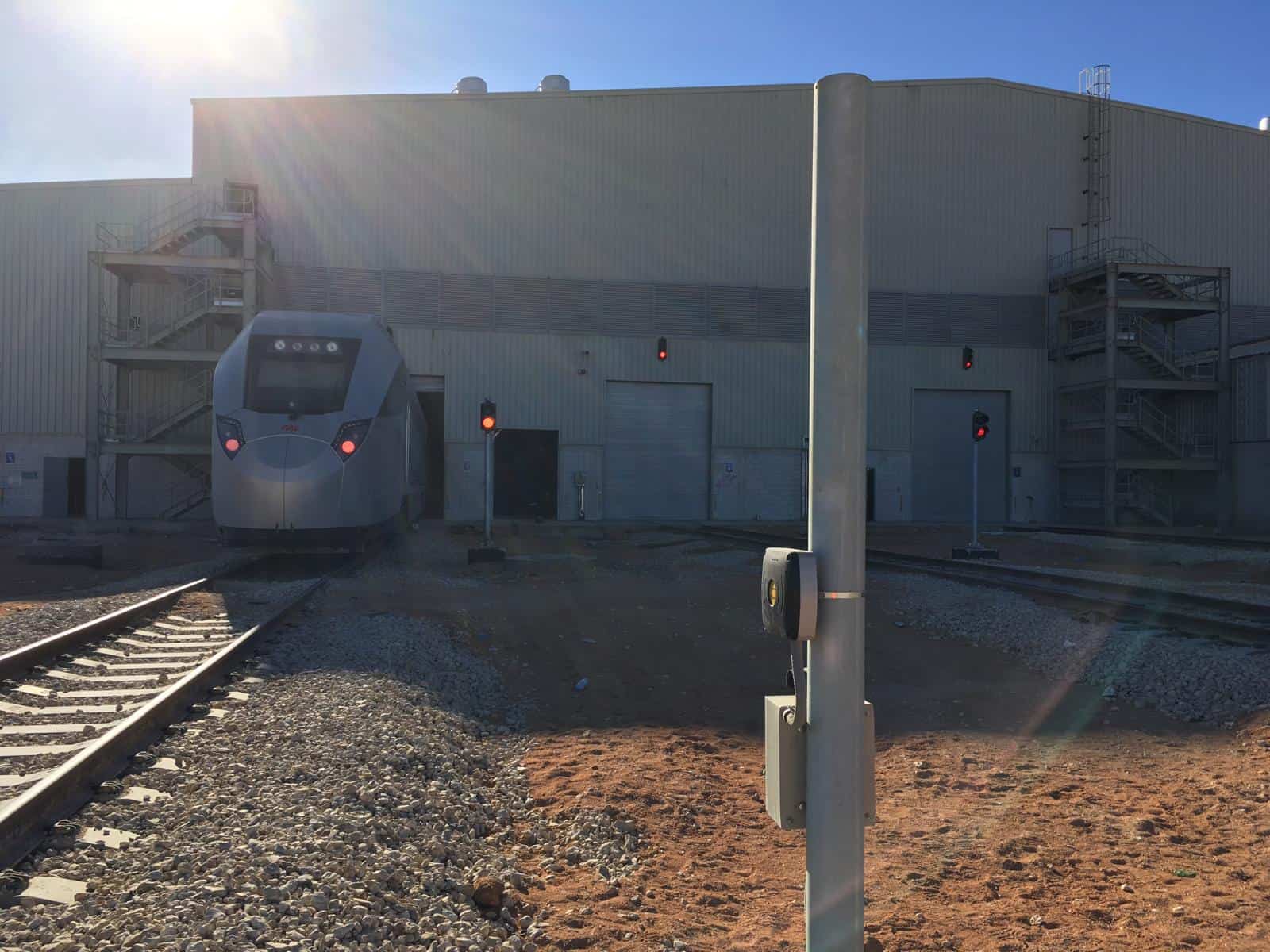 The DPS system safely manages train movements through the Riyadh maintenance workshop, covering four monitored tracks. IESYS delivered a fully integrated solution including SCADA-based centralized monitoring, multi-level train movement authorization, RFID car identification, access gates, traffic lights, ESD emergency stops and CCTV monitoring.